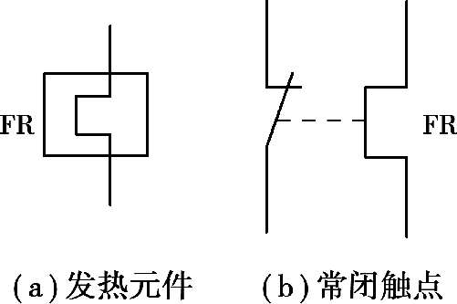 热继电器的形式有多种,其中以双金属片最多。双金属片式热继电器主要由热元件、双金属片和触头三部分组成,如图1.34 所示。双金属片是热继电器的感测元件,由两种膨胀系数不同的金属片碾压而成。当串联在电动机定子绕组中的热元件有电流流过时,热元件产生的热量使双金属片伸长,由于膨胀系数不同,致使双金属片发生弯曲。电动机正常运行时,双金属片的弯曲程度不足以使热继电器动作。当电动机过载时,流过热元件的电流增大,加上时间效应,从而使双金属片的弯曲程度加大,最终使双金属片推动导板使热继电器的触头动作,切断电动机的控制电路。