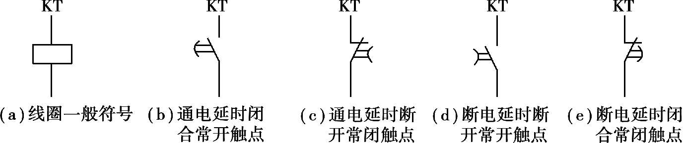 时间继电器的图形符号及文字符号如图1.33 所示。