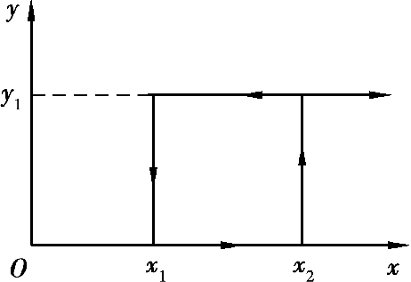 继电器的主要特性是输入-输出特性,又称为继电器特性,当改变继电器输入量的大小时,对于输出量的触头只有“通”与“断”两个状态,如图1.29 所示。当继电器输入量 x 由零增至 x 2 以前,继电器输出量 y 为零。当继电器输入量 x 增至 x 2 时,继电器吸合,输出量为 y 1 ,如 x 再增大, y 1 值保持不变。当 x 减小到 x 1 时,继电器释放,输出量由 y 1 降到零, x 再减小, y 值均为零。 x 2 称为继电器吸合值,欲使继电器吸合,输入量必须等于或大于 x 2 ; x 1 为继电器的释放值,欲使继电器释放,输入量必须等于或小于 x 1 。