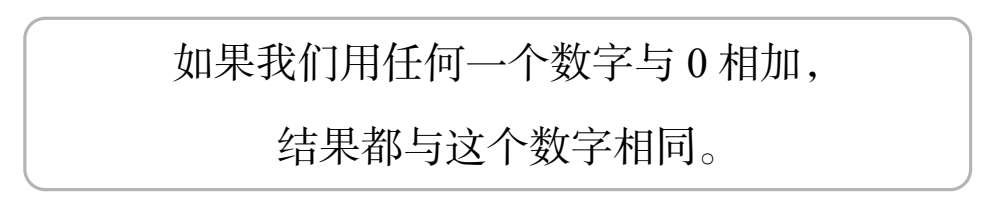 在数学中,通常的方法是基于以往的世界进行构建。目前我们已经有了一个从1开始、运用加法构建的世界,得到了所有的数字1、2、3等等。当把0放入这个世界时,我们就需要知道如果我们把它“构建”在其他数字之上会发生什么,也就是让它与其他数字相加的结果是什么。私下里,我们都认同0表示什么都没有,于是我们就可以说,任何数字与0相加都不会发生变化。也就是1+0=1、2+0=2、3+0=3,以此类推。我们无法列出所有的等式,因为有无穷多的数字还在后面等着。于是我们把结果概括为: