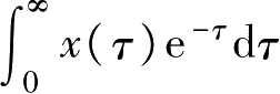 最后一点,从图4.4c看,由于 τ 在(-∞,0)区间内使 x 1 ( τ )恒为零,式(4.11)中的积分下限就可以从-∞右移到0。因而,式(4.11)变为