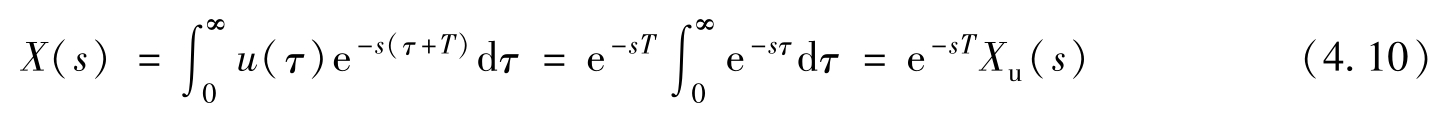 式中, X u ( s )为单位阶跃信号 u ( t )的拉普拉斯变换, X u ( s )=1/ s [式(4.10)运算中,积分变量 τ 只在积分式内部被使用,积分完成后随即消失,所以对积分结果毫无影响]。