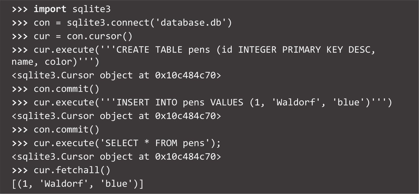SQLite非常受欢迎,乃至很多标准库中都包含对它的支持,且无须外部模块,例如,Python的标准库就是如此: