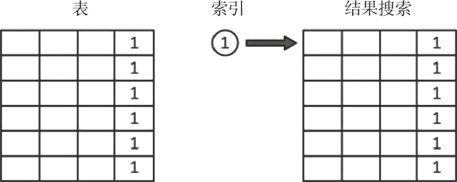 假设有一个100万行的表,其索引字段在表的所有记录中都有着相同的值。现在,假设我们对该表做一次查询,在另一个未索引的字段中去找某条记录。即便使用了索引,显然也不会加快这个过程,因为索引会返回表中的每一条记录,如图3-11所示。