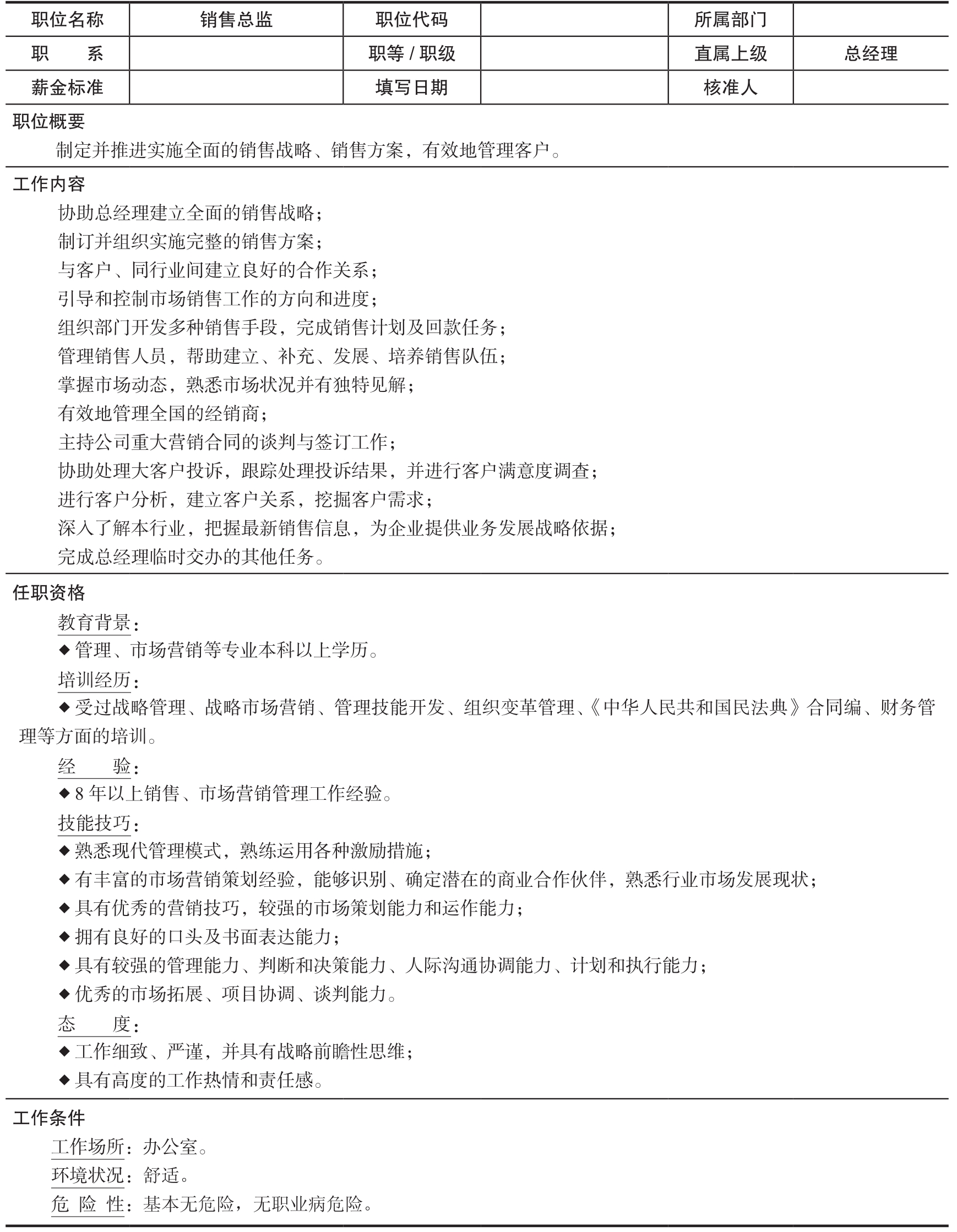 (2)工作说明书的叙述要清晰、完整,文字力求简单、精确。工作描述应遵循“动词+名词+目标”或者“工作依据+动词+名词+目标”的书写格式。