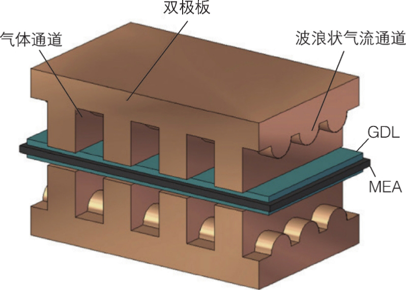 Kuo等人 [84] 在传统的直气流通道和新型波浪状气流通道之间进行了比较研究,如图2-26所示。结果表明,在波状通道中出现了对流效应。与直气流通道相比,波浪状通道提供了更好的对流传热性能、更高的气体流速和更均匀的温度分布,从而使得催化反应的效率大大提高,电池电压和功率密度更高。