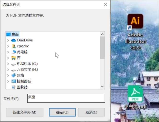 在Illustrator中,不仅能将设计制作的作品导出为图片,还可以将其快速生成PDF文档,更加便于浏览。方法是选择“文件”>“脚本”>“将文档存储为PDF”菜单命令,选择文件夹后,单击“确定”按钮,即可快速导出,如图1-14所示。