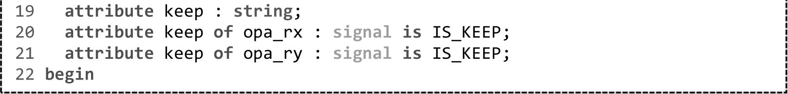 此外,对于等效寄存器还可以通过设置综合属性keep避免其被合并,如VHDL代码2.3所示,这里IS_KEEP为true。