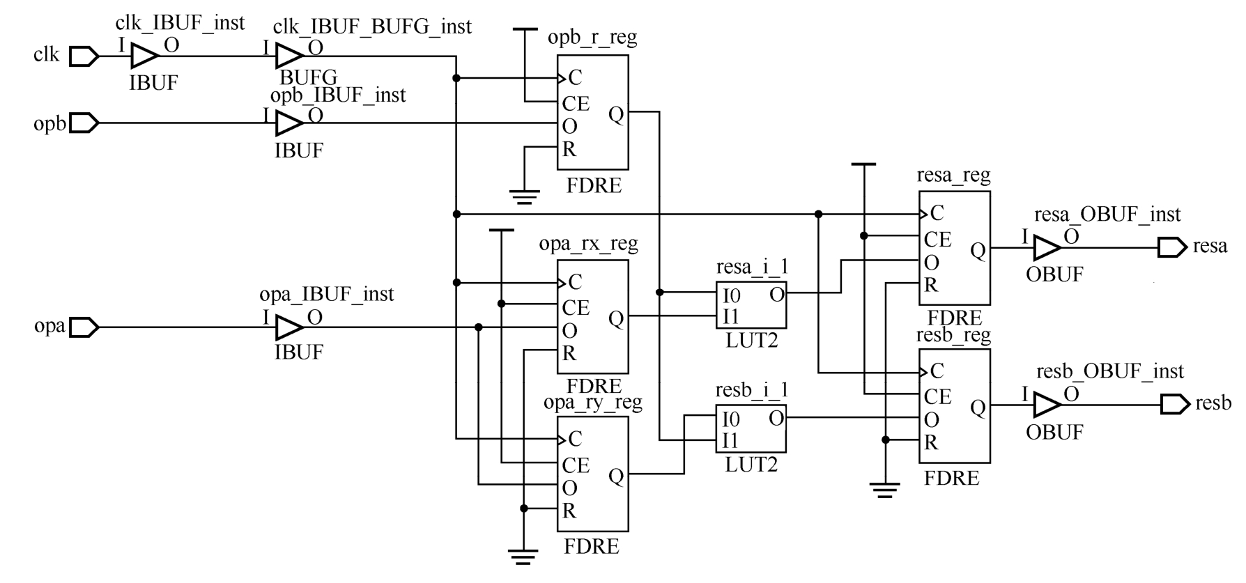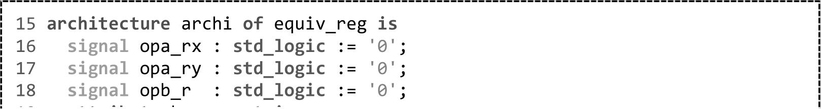 所谓等效寄存器(Equivalent Registers),是指具有同源的寄存器,即共享输入数据的寄存器,如VHDL代码2.2中的opa_rx和opa_ry。