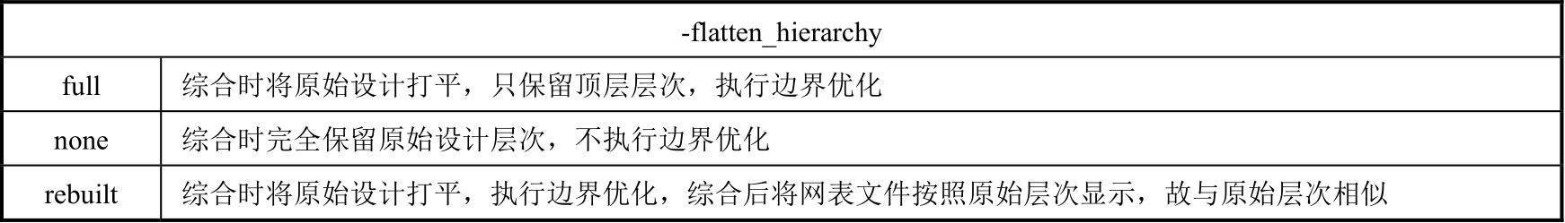 综合选项的设置对综合结果有着潜在的影响。综合选项窗口如图2.1所示。本节介绍-fla-tten_hierarchy [1] 的含义。