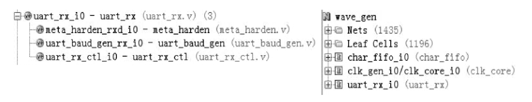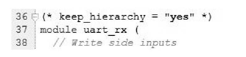 -flatten_hierarchy是一个全局的综合指导原则,即它对整个工程的所有模块都起作用。如果需要对指定模块的层次化进行管理,就需要用到keep_hierarchy综合属性了。仍以Wavegen工程为例,在uart_rx模块中添加该属性,如图2.7所示。-flatten_hierarchy设定为full,综合前后的层次对比如图2.8所示。可以看到,uart_rx被保留,但其内部依然被打平。