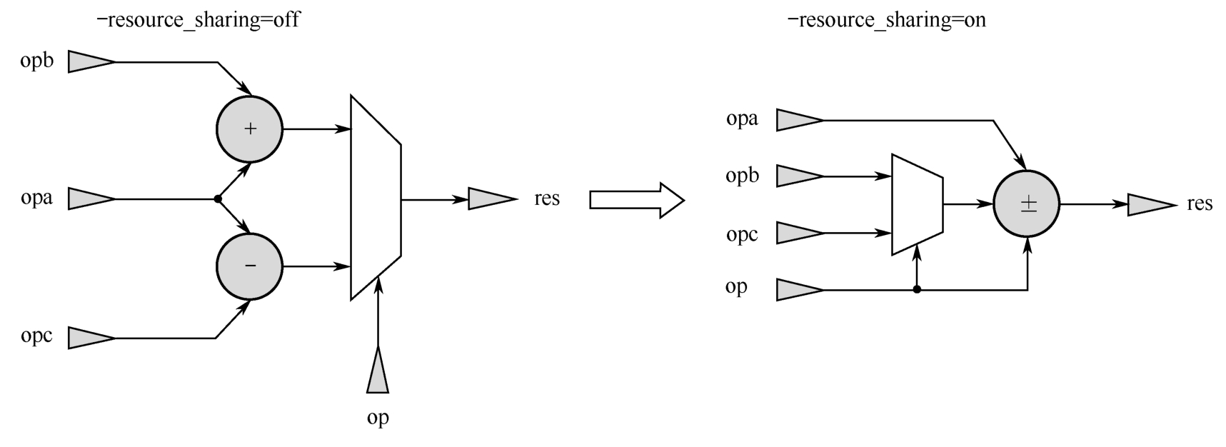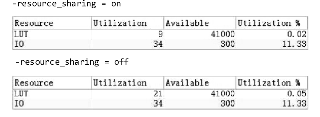 -resource_sharing的作用是对算术运算通过资源共享优化设计资源,它有3个值,即auto、off和on。默认值为auto,此时会根据设计时序需求确定是否进行资源共享。