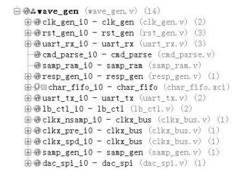 原始RTL代码层次如图2.2所示,三者综合后的网表层次如图2.3所示。结合表2.1,不难理解图2.3所示结果。