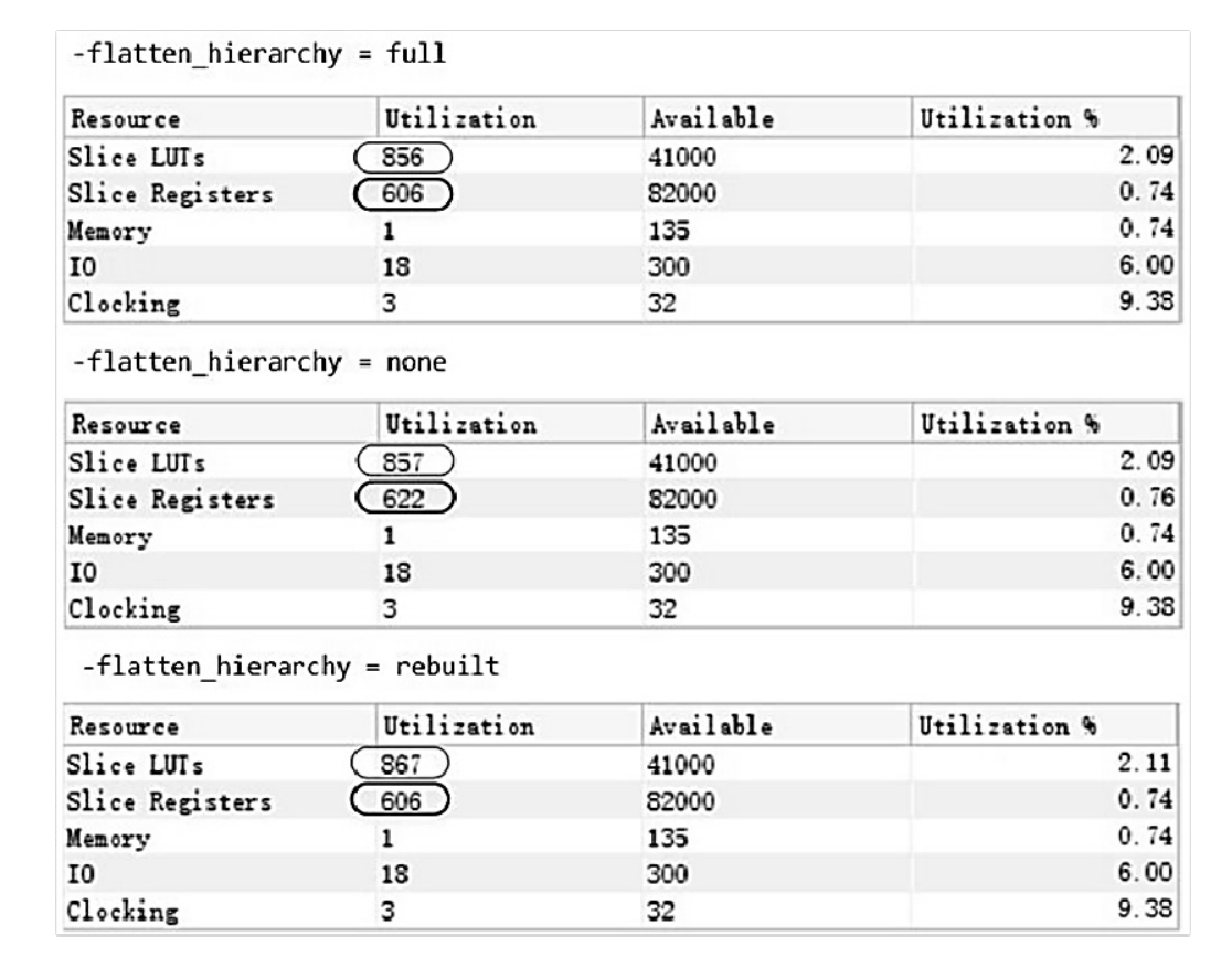 图2.4 -flatten_hierarchy为不同值时的资源利用率