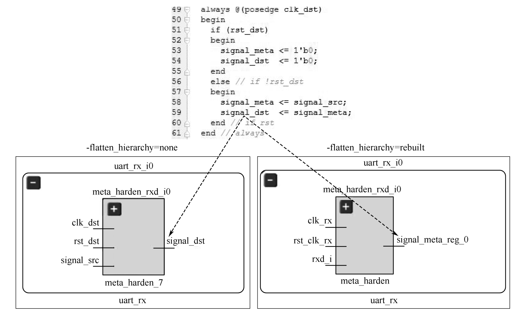 图2.5 -flatten_hierarchy为none和rebuilt时对寄存器输出端口名的影响