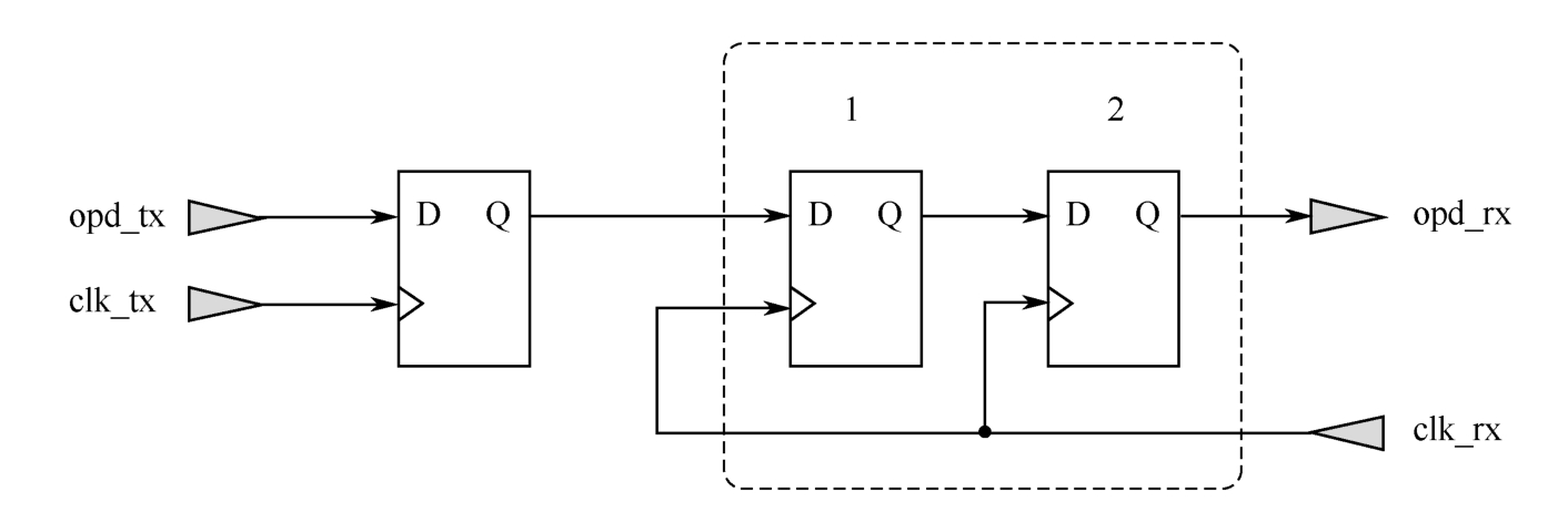(1)表明1号触发器接收的数据是来自与接收时钟异步的时钟域;