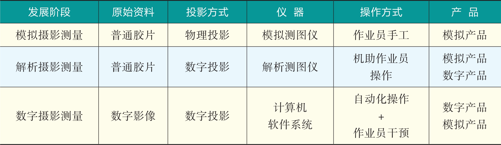 表1-1-1 摄影测量学三个发展阶段的特点