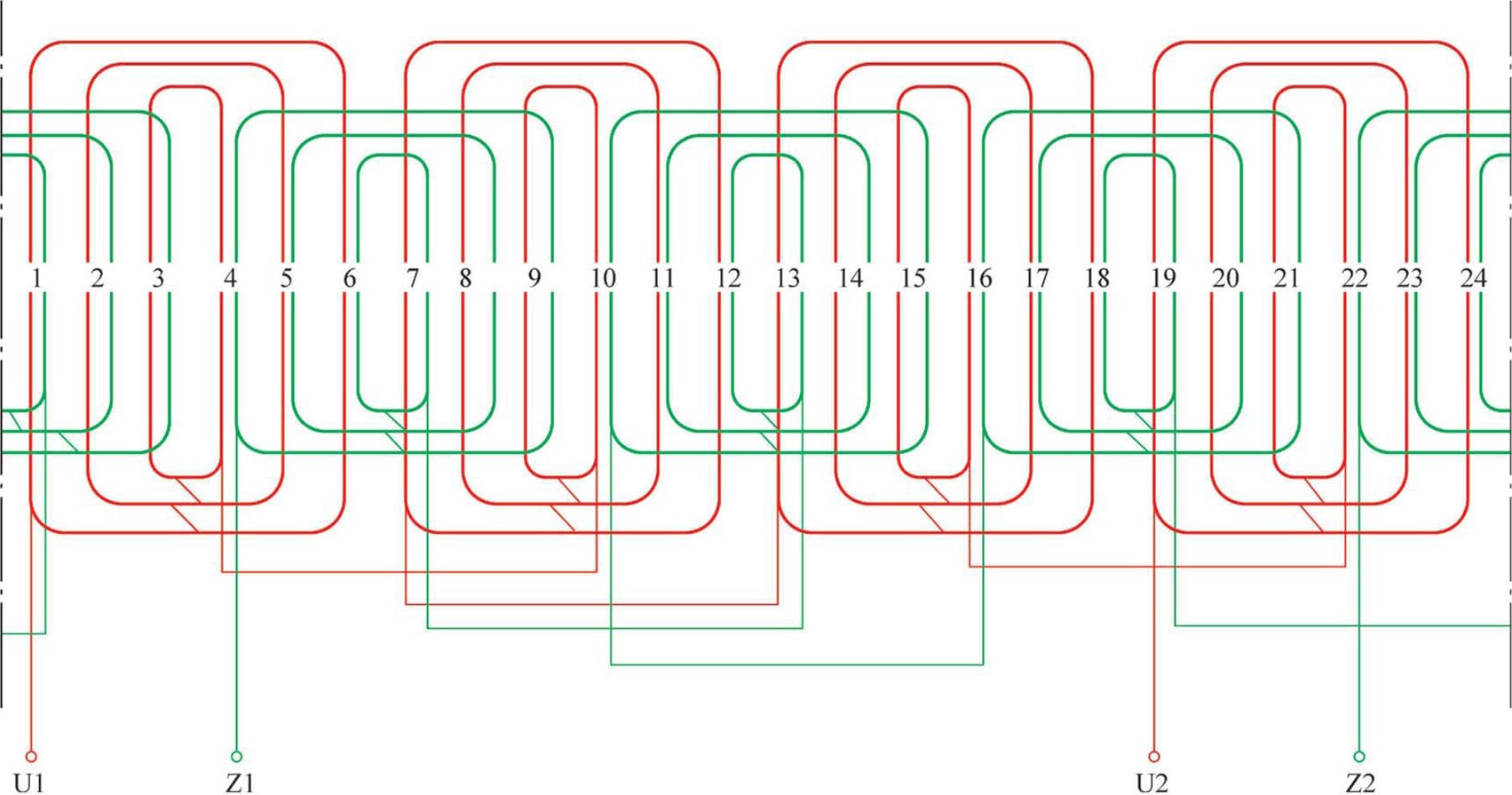 图2-11 24槽4极正弦绕组展开图