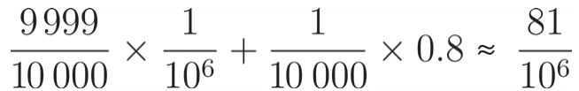 结果是百万分之一。假设这个算法是正确的,让我们继续算下去。