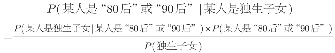 有时我们也会想把条件事件和主体事件交换,考虑其概率。比如,已知一个人是独生子女时,此人是“80后”或“90后”的概率有多大?这种换位思考,在很多实际问题中是很有用的。