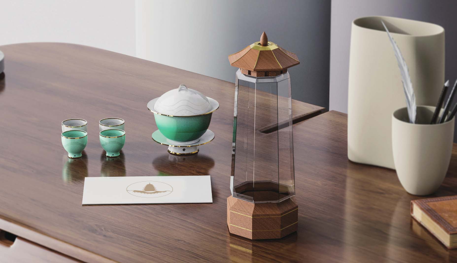 就造型而言,可将文化造型符号、抽象图案和形态要素等与产品的形态、色彩、质感等造型要素进行结合。就产品功能性与结构而言,可以将传统文化中的工艺、结构、功能融入其中,也可以结合现代智能化产品,使文化与现代科技相融合。例如,后文案例中的“乐埙”香薰音响设计(详见P16),就是以智能化产品的文化科技融合为设计构思,将中国传统乐器、音响、香薰结合,并通过APP与按键的双操控模式满足用户不同的操作习惯需求,让其从形、感、境等不同方面体会中国传统文化的韵味。