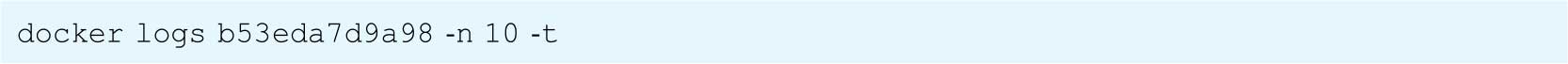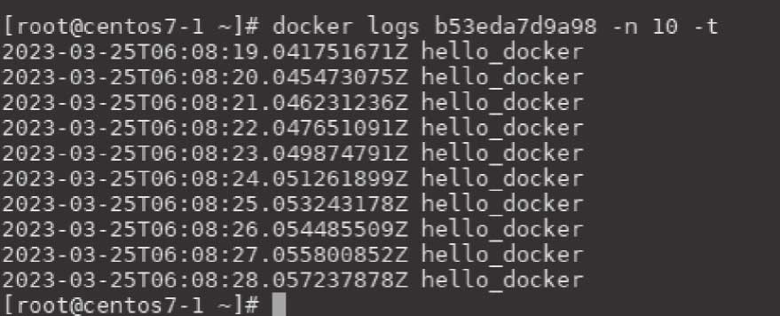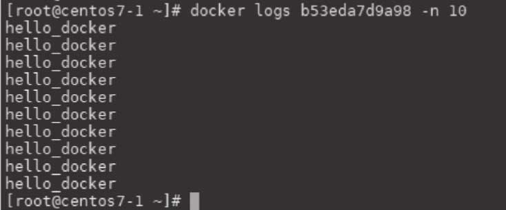 如下命令中的-n 10表示查看容器的最后10行日志,如图2-69所示。