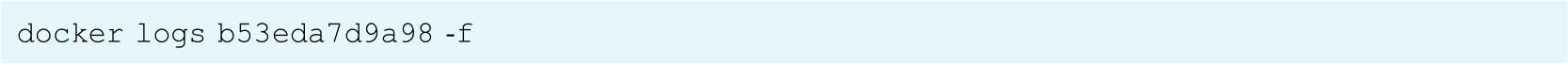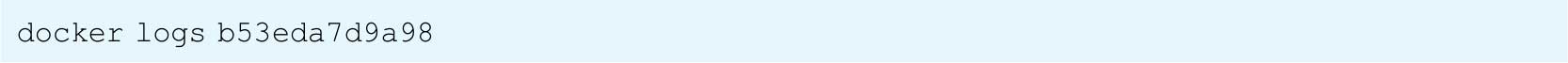 下面我们用实例来进行演示。查看容器的所有日志的命令如下,这里b53eda7d9a98为容器的id,可以通过执行docker ps命令查看,前面已经介绍过。