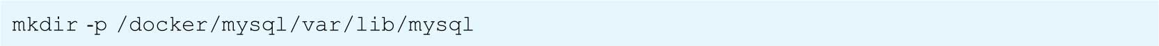 3)要创建挂载目录,则执行如下命令,创建挂载目录,用于挂载MySQL容器中的数据文件目录。