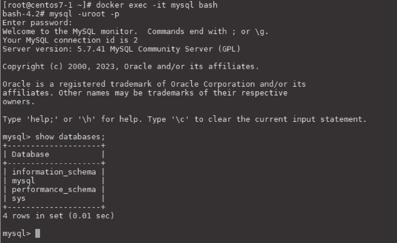 至此MySQL数据库就部署完成了,其他对MySQL的配置操作这里不再展开介绍。直接使用exit命令退出容器即可。
