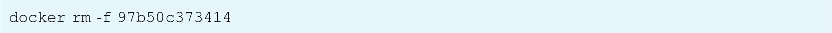 接下来,我们可以通过执行如下命令将docker容器删除。这里通过指定容器的ID进行删除,当然也可以指定容器的名字。-f参数表示强制删除。需要和删除镜像的命令区分开。删除镜像的命令是docker rmi,删除容器的命令是docker rm,我们可以通过镜像的英文单词image的首字母i区分记忆。