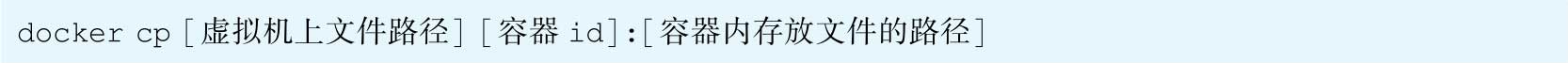 挂载目录的方式是启动docker时事先规划好的,但是在实际应用中,常常会遇到一些问题,比如docker容器启动以后,希望将虚拟机上的某个文件拷贝(复制)到容器内,就需要虚拟机和容器之间的文件能够相互拷贝。从虚拟机拷贝文件到容器的命令格式如下。