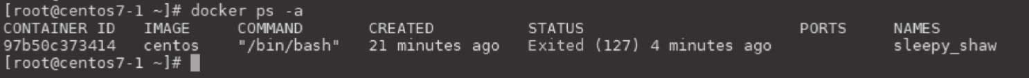 这里需要注意的是,docker ps命令的作用是查看正在运行的容器。当退出以交互的方式启动的容器后,容器就停止运行了,此时可以通过如下命令查看所有容器,包括已经停止执行的。
