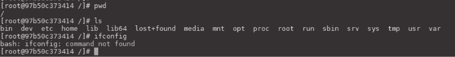 此时可以在docker容器中执行一些常用的Linux命令,如图2-54所示。通过centos镜像启动的docker容器,其实跟centos虚拟机是非常类似的,至此可以理解什么是docker容器了。