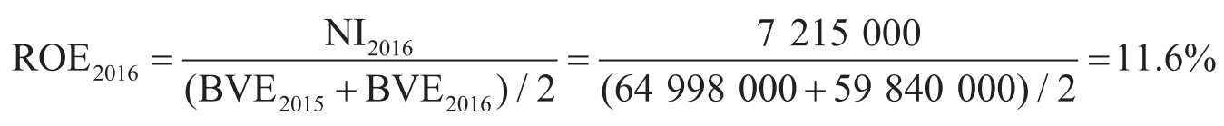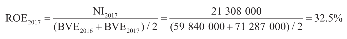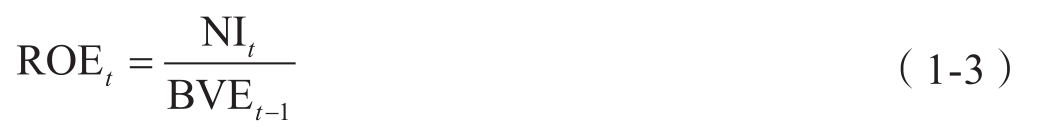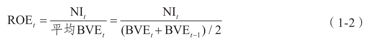 其中NI t 是 t 年的净利润,权益的平均账面价值为 t 年年初和年末的账面价值之和除以2。净资产收益率假设当年用于产生净利润的股权为年初已有的和当年投资的任何新股权。请注意,有的公式在分母中仅使用 t 年年初(即 t -1年年末)的股东权益。这是假设公司仅使用年初已存在的股权来产生当年的净利润,即
