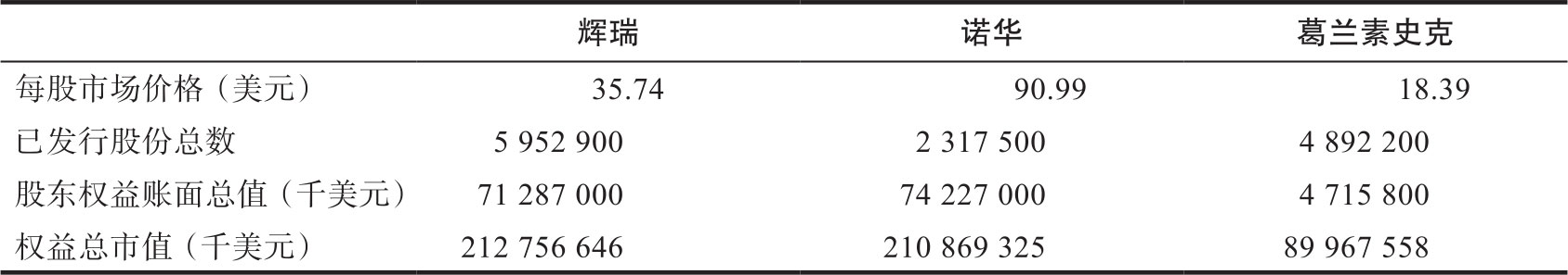 表1-4 辉瑞、诺华和葛兰素史克的净利润和股东权益账面价值 (单位:千美元)