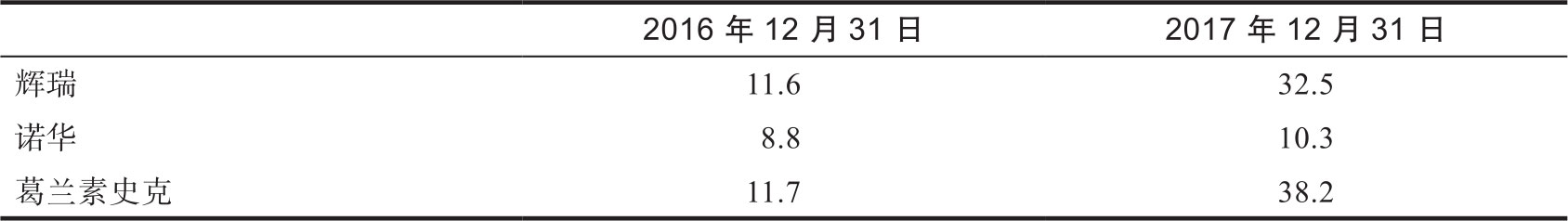 表1-5总结了辉瑞、诺华和葛兰素史克2016年和2017年的净资产收益率。