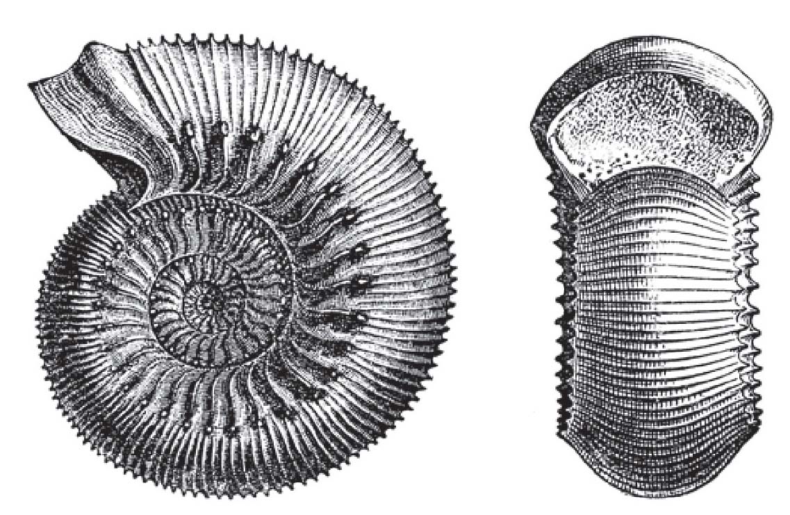 菊石是一种已经灭绝的软体动物的壳。这些生物曾经在地球各处的海洋中均有分布。它们印刻在岩石上形成的螺旋形状,启发了许多关于地球深处的民间传说。