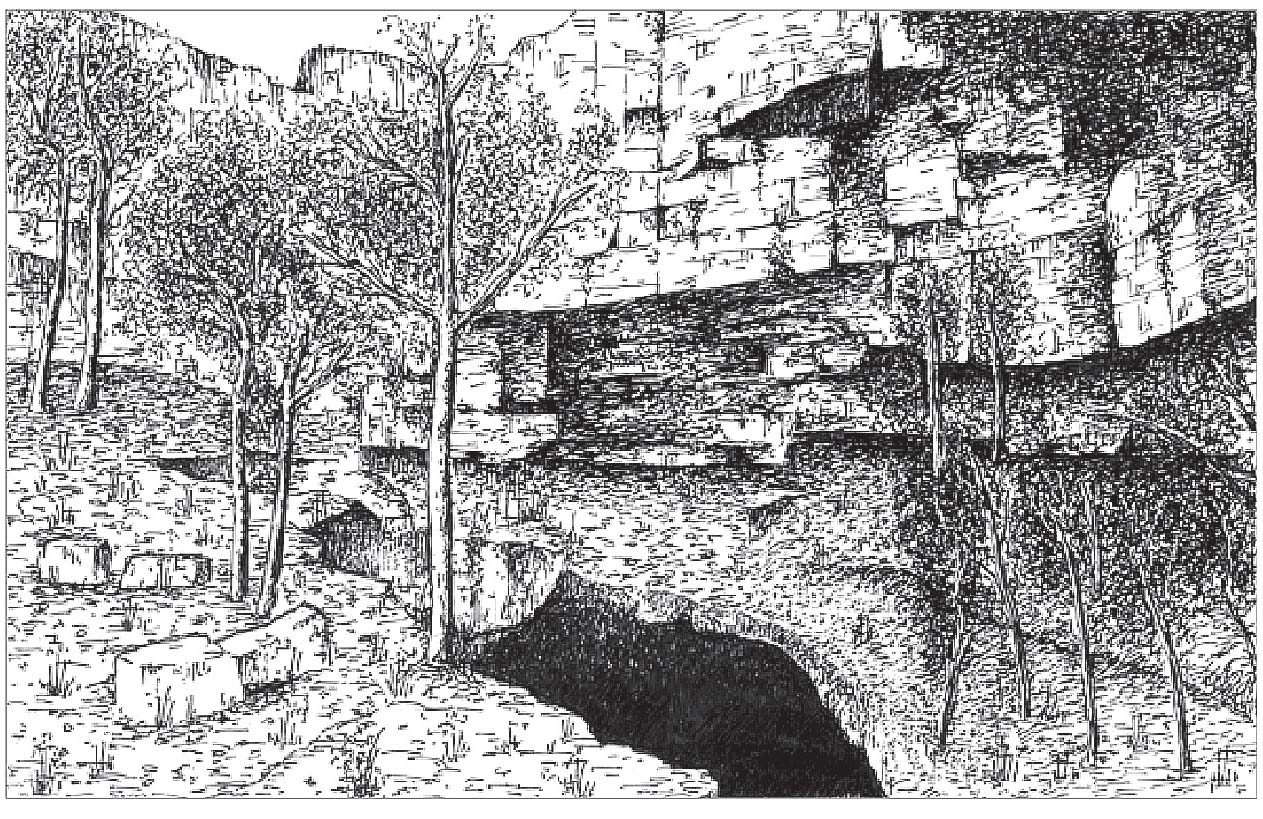 我们穿过摇摇晃晃的岩石,爬过洞穴入口。父亲鼓励我们不要怕,还告诉我们,再过几米就能进入一个可以起身行走的大洞穴,空间中那未知的黑暗就会随之消失。但这种无力的安慰适得其反,更加放大了在黑暗面前无能为力的感觉。某种程度上来说,黑暗压倒了一切。想到这里,我不禁哭了起来。姐妹们还在向前爬行,而我却转过身,朝向昏暗的出口方向,寻找母亲的声音。就这样,我迈出了第一步,跨过了洞口。而恐惧却占了上风。