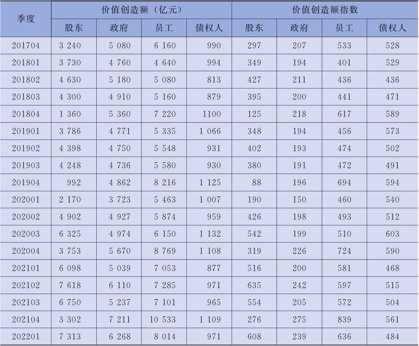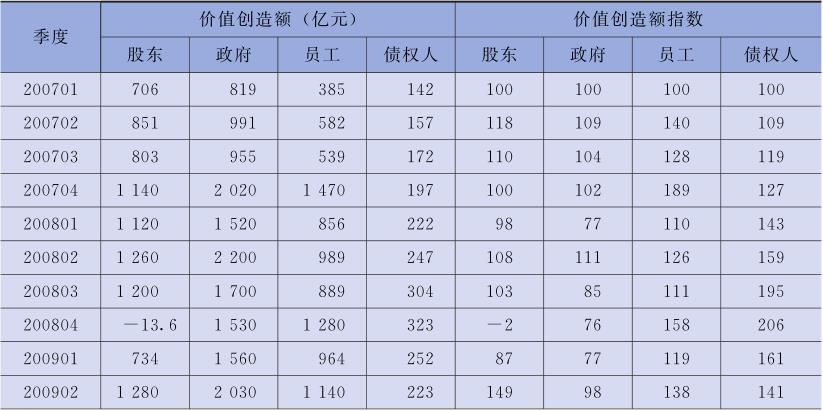 对大制造业价值创造额的构成进行分析,可以反映大制造业股东、政府、员工及债权人等利益相关者的分配所得在企业新创价值中所占的比重及变化趋势,为政府相关部门有针对性地制定收入分配和税收等政策提供参考。