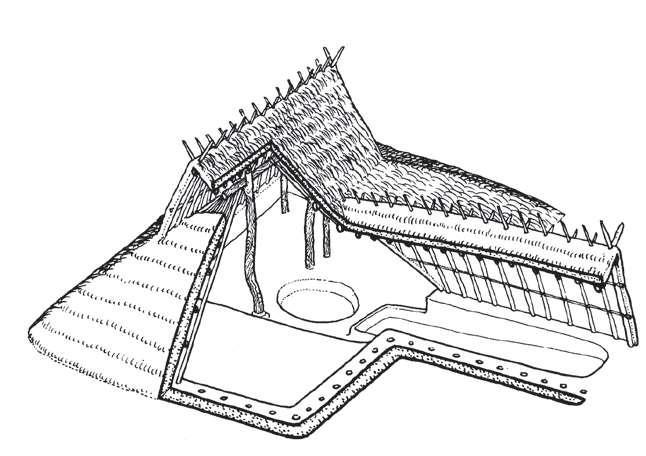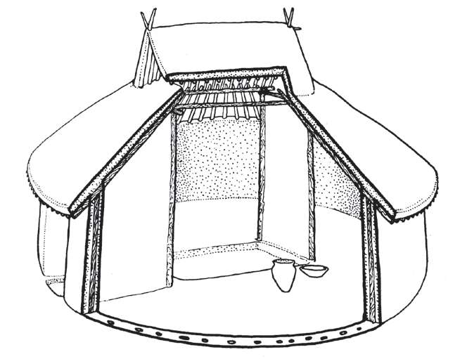 从“构木为巢”的时代起,利用直木构建的最实用空间就是方形,而圆形房屋则很有可能是长期制陶的先民移植陶作的理念于建筑中而创造的。无论方形或圆形建筑,其墙体最初都是利用地穴的立壁。后来室内地面慢慢抬升,高出地面的部分以立木和葛藤之类编结,覆以加入草筋的陶泥,利用陶泥的可塑性构成“木骨泥墙”,经过焙烧以后,有的能达到非常坚硬的程度。尽管有这样的墙体,但房屋的承重结构依然是集中荷载的立柱承重框架体系。