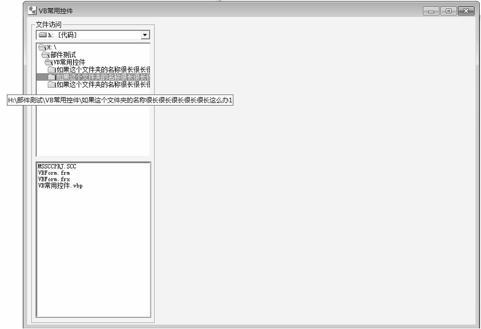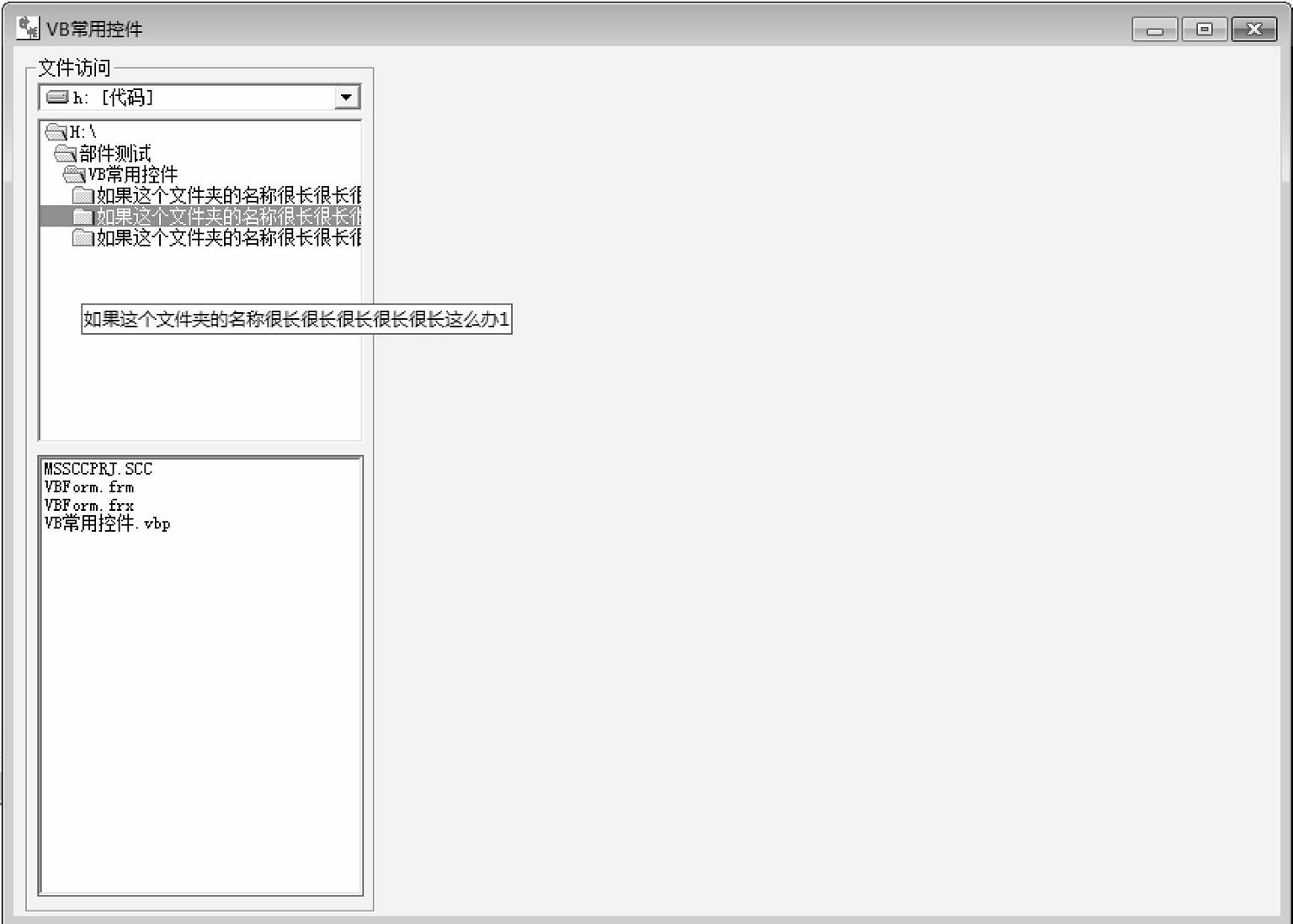 在软件开发中,该磁盘文件列表一般是在左侧很小的一个区域,如果遇到一个较长的文件夹名称时该如何显示文件名称?例如图2-2所示的这种情况。这时我们要用到控件的文本提示功能,这个功能在属性区,如图2-3所示。