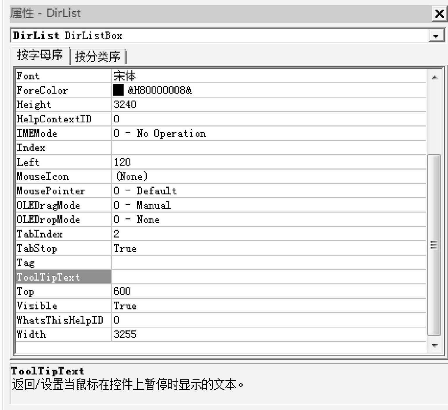 Private Sub DirList_Click() Me.DirList.ToolTipText = Dir(Me.DirList.List(Me.DirList.ListIndex), vbDirectory) End Sub