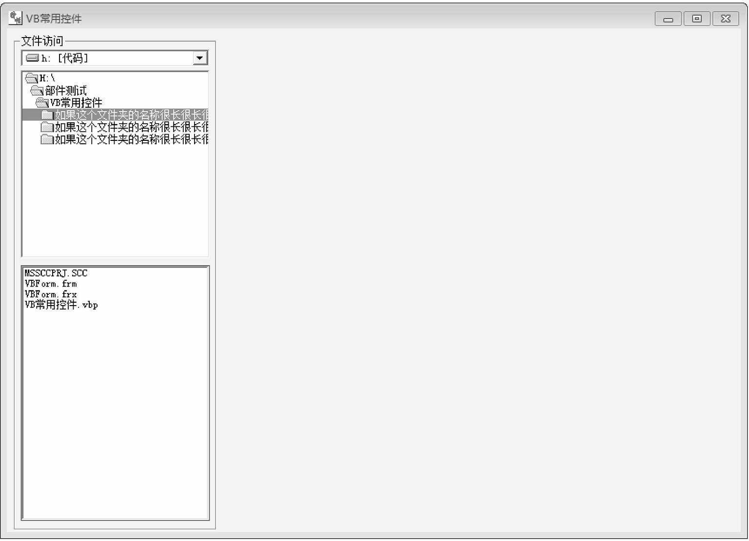 在这里,我们不是在属性区内直接填写这个长文件夹名,而是要当鼠标选中文件夹列表的时候显示出该列表的名称。这需要重新回到代码区,双击控件就进入该控件的代码编辑区(见图2-4)。在过程选项中添加如下的鼠标单击过程响应,运行结果如图2-5所示。