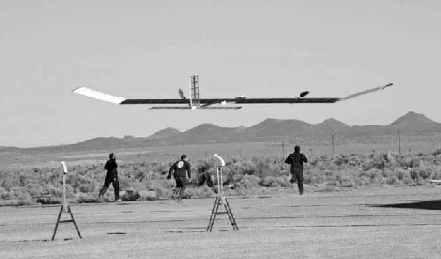 第五阶段为全面应用阶段,机体、能源系统、动力系统、任务载荷都能有很长的使用寿命,太阳能无人机将拥有长达数月乃至数年的滞空能力。Google公司在2014年收购了太阳能无人机公司Titan,主要为偏远地区或山区提供5G网络覆盖,由于在2016年的5G网络覆盖测试中,发现数据传输成本相对热气球更为高昂,暂停了“Solara 50”太阳能无人机(见图0-5)的后续开发。2016年6月,原Facebook公司的“Aquila”太阳能无人机完成了首次试飞,在着陆时由于突发强风使得飞机偏离了航道而发生部分损坏 [5] 。尽管如此,原Facebook公司仍然看好采用太阳能无人机为落后偏远地区提供稳定的互联网信号,也表示将继续发展太阳能无人机,并于2017年7月进行了第二次试飞且取得了成功 [6] 。