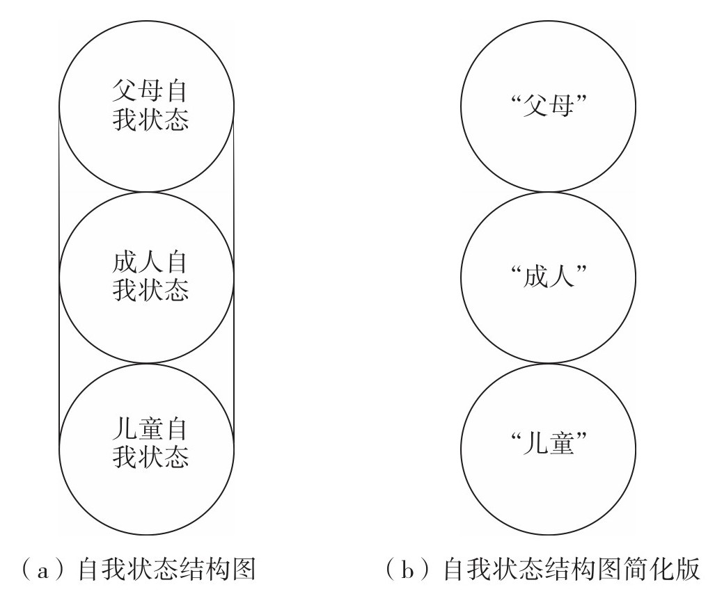 若用专业术语表达,一种自我状态在现象上可被描述为一套连贯一致的情感体系,在操作方面则是一套连贯的行为模式。用更为贴切实际的术语来讲,自我状态就是一种伴随着一套相关的行为模式的情感体系。每个人似乎都拥有一个有限的自我状态集合,它们并不代表人们的角色,而是人们的心理现实状态。这些自我状态可分为以下三类:(1)与父母式形象的心理状态相似的自我状态;(2)自发地对现实进行客观评估的自我状态;(3)在儿童早期就已定型的、能反映过往却依然活跃着的自我状态。其专业称谓分别是,外显心理(extero-psychic)自我状态、新近心理(neopsychic)自我状态以及原初心理(archaeopsychic)自我状态。通俗来讲,就是父母自我状态、成人自我状态和儿童自我状态,这三个简单术语适用于除最正式场合以外的所有讨论情境。