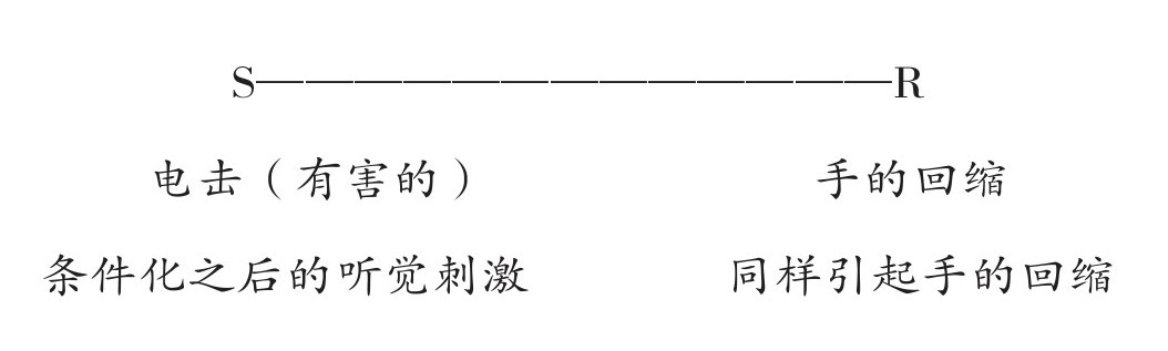 反应R不会因为刺激S1而产生,但是会因为刺激S2产生,并且这是一种无条件反射;当我们首先向有机体呈现了刺激S1,紧接着呈现了刺激S2,不久之后,刺激S1的出现也会引起反应R的产生。这也就是说,从此刺激S2就开始被刺激S1所替代。