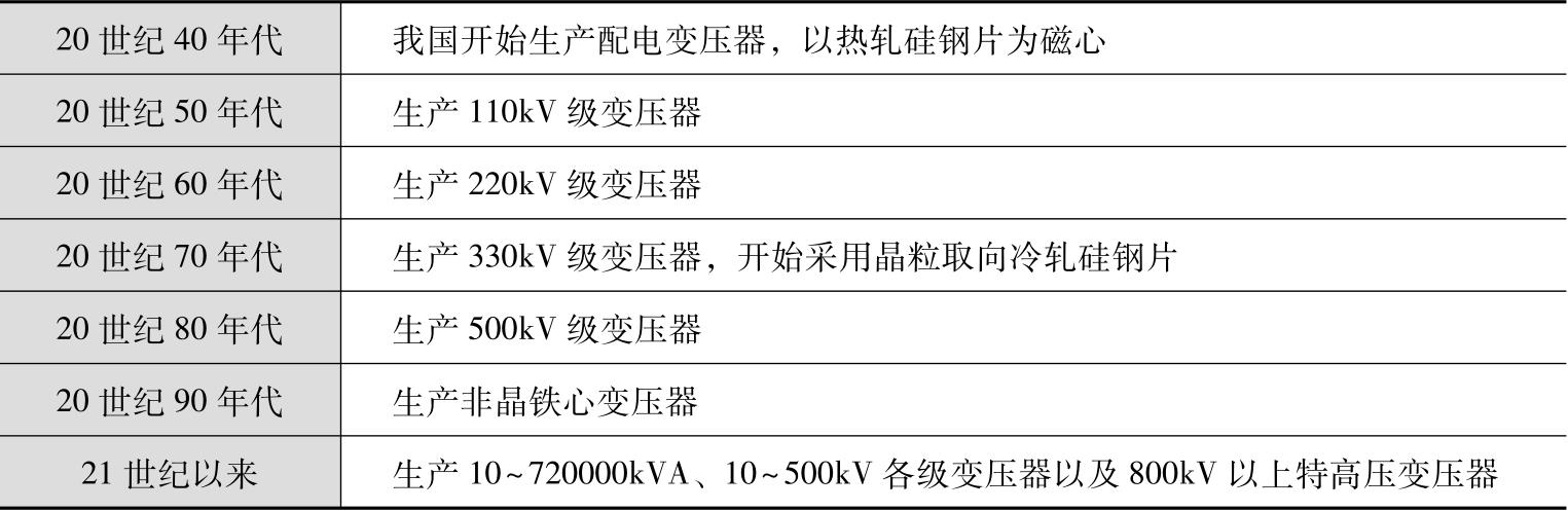 我国的变压器生产制造事业于20世纪40年代发展,其基本技术脉络见表3-1。