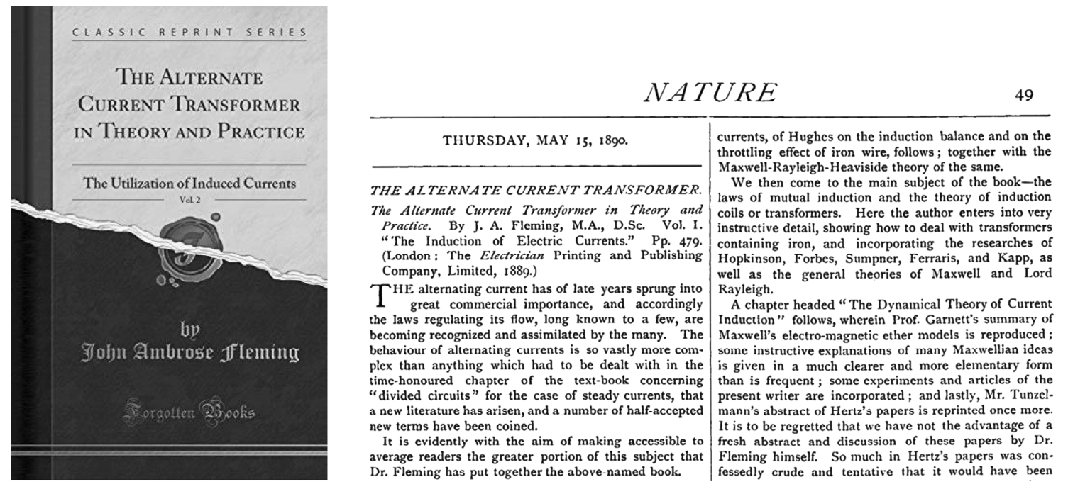 图3-5 J.A.Fleming关于变压器的专著以及在 Nature 上的书评