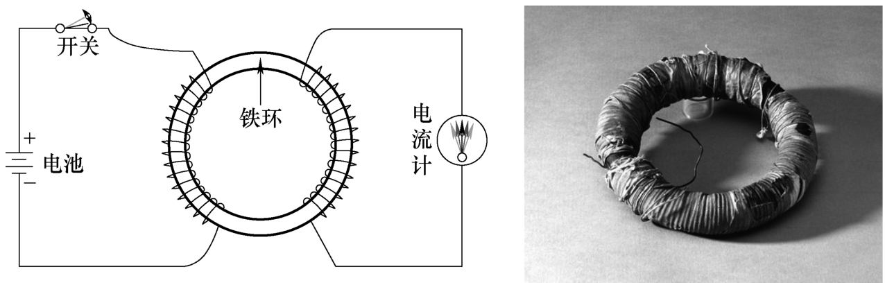 图1-9 法拉第铁环实验示意图及所用铁环