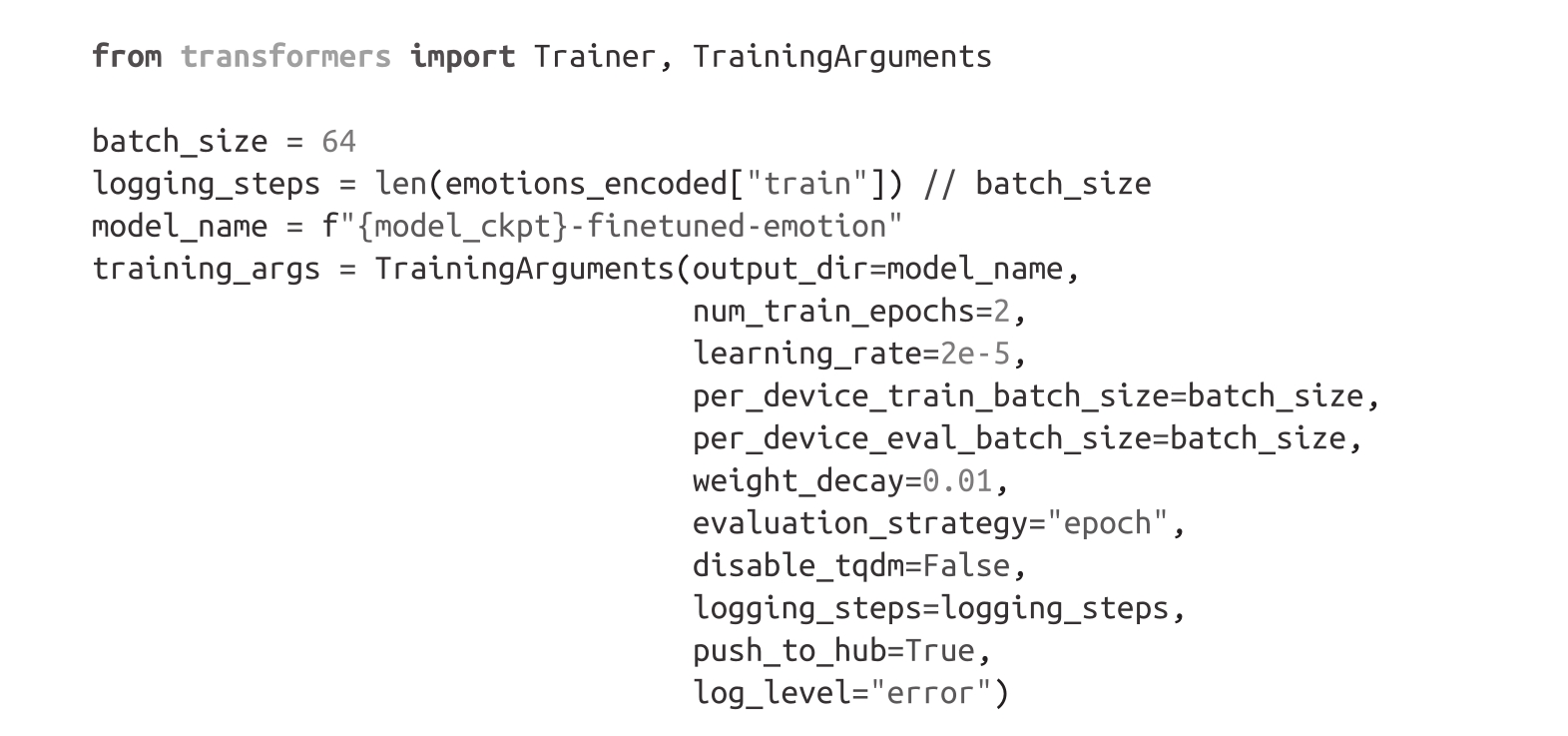 我们将使用Hugging Face Transformers库中的Trainer API简化训练循环。让我们看一下设置它所需的步骤!